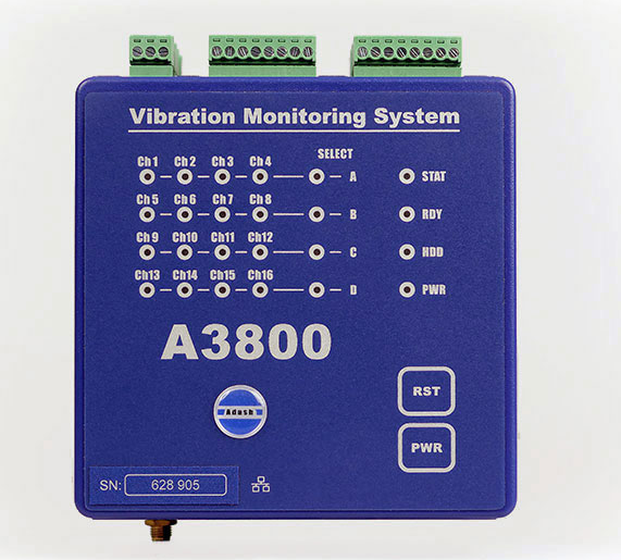 The A3800 is a compact size on-line monitoring and diagnostic system. Every factory has some critical machines on which the whole production rely on. Such a machinery should not be checked by portable devices on regular basis but they should be monitored continuously in order to know their “health” anytime. Information about vibration and related process values such as temperature, gives you and advantage of planned machinery repairs and decreases unexpected shut downs which are extremely expensive for your factory.