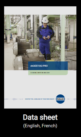 | Measurement modes | Analyzer – analytical measurements Data collector – route measurements Balancer – 1 and 2 plane on site balancing Recorder – raw signal recording for later post analysis Run Up – run up and coast down measurements Ultrasound – measurement of ultrasound in 30 – 50 kHz range LED stroboscope, LED torch FASIT – Expert system for automatic fault detection Vibration meter – basic vibration measurements |