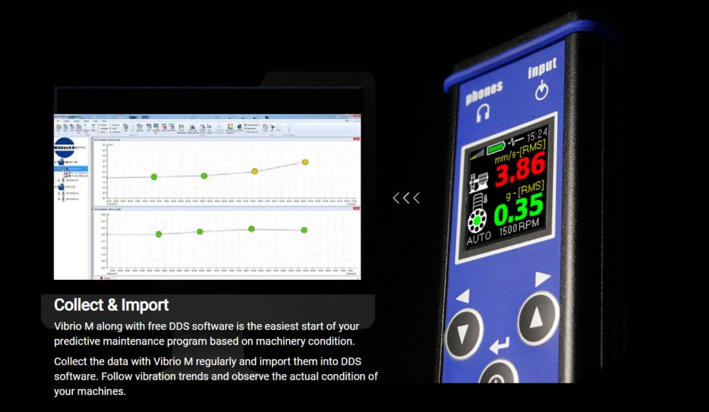 Displacement Peak-Peak: 2 – 100 Hz [µm, mil]* available in DDS software for Vibrio