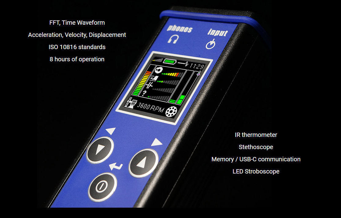 Other functions : LED stroboscope (0.17-300 Hz, 10 – 18 000 RPM)