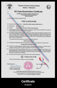 Ex certification : II 2 G Ex ib IIC T4 Gb