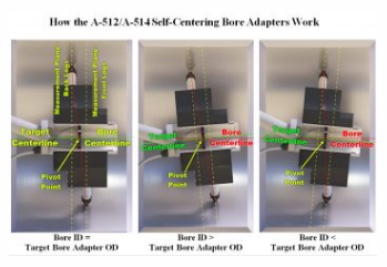 - A-514A,B,C Self-Centering Bore Adapters are easy to insert into tight spaces and do not need to be inverted (0° & 180°) to calculate results.